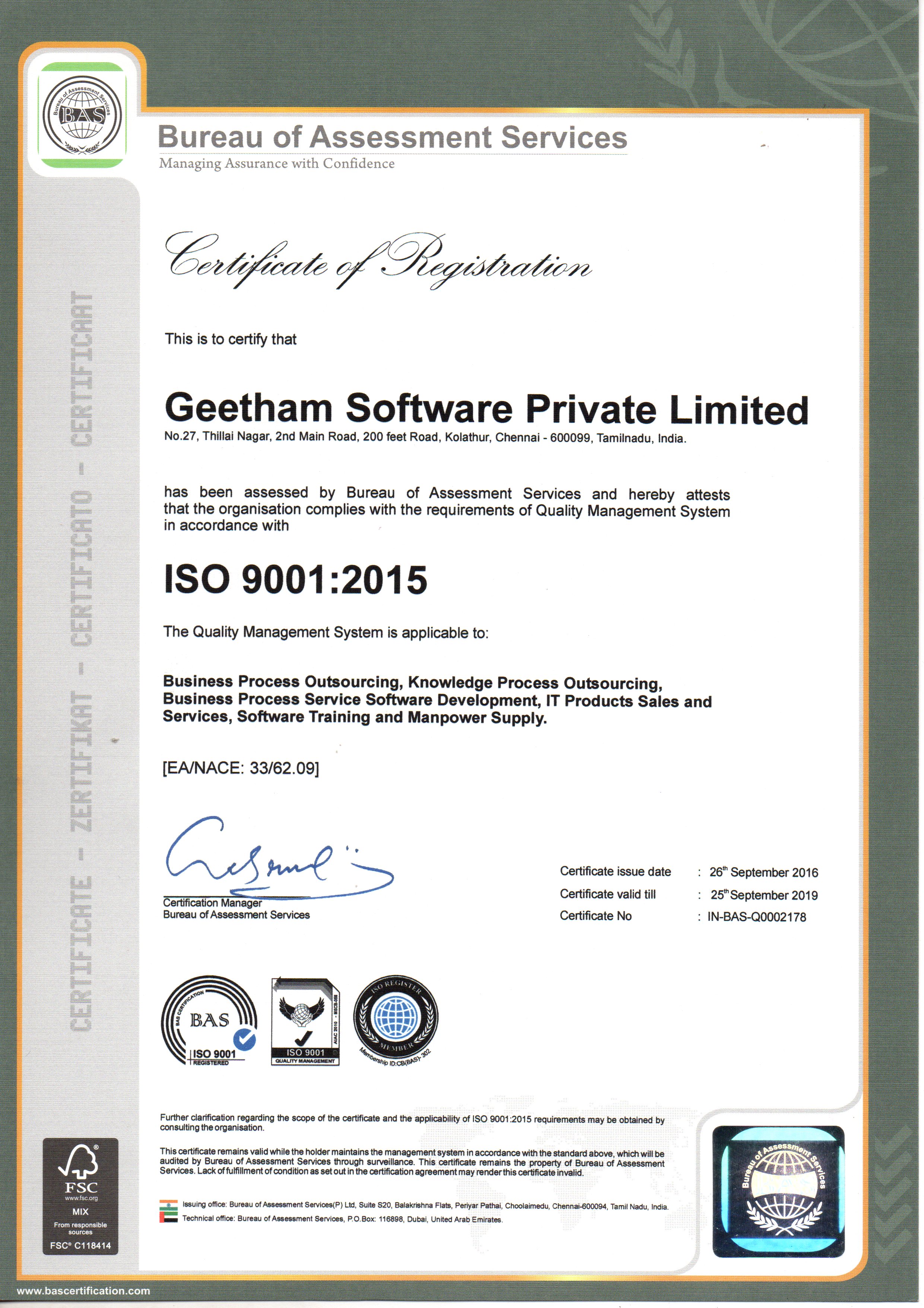 Geetham Software Private Limited acquires ISO 9001 - 2015 Certified